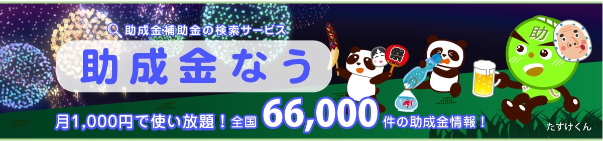 「助成金なう」は全国の助成金・補助金を検索できるサイトとなります。