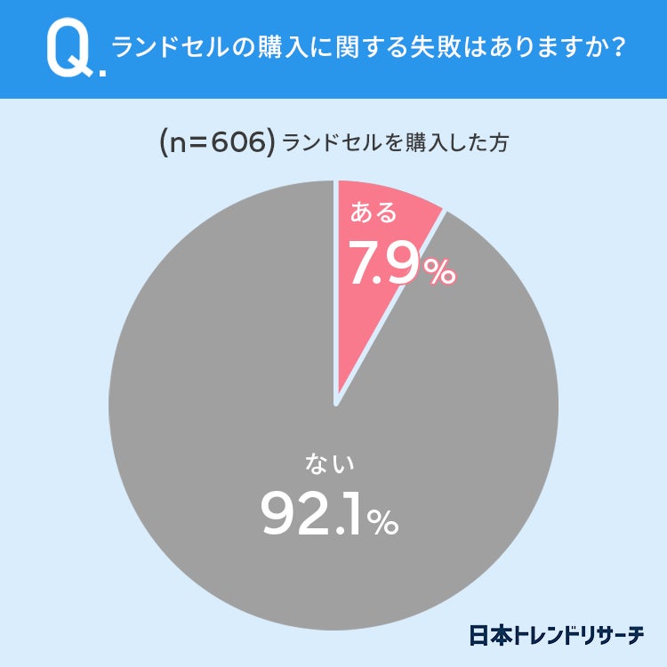 7.9%が、ランドセルの購入に関する失敗が「ある」と回答しています。