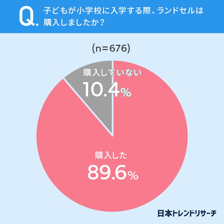 89.6%とおよそ9割近くの方が、子どもが小学校に入学する際「ランドセルを購入した」と回答しています。