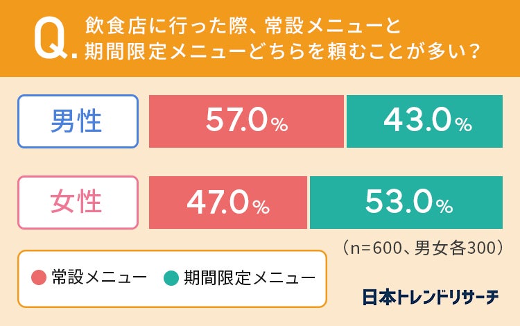女性の53%が「常設メニューより期間限定メニューを頼むことが多い」と回答しています。