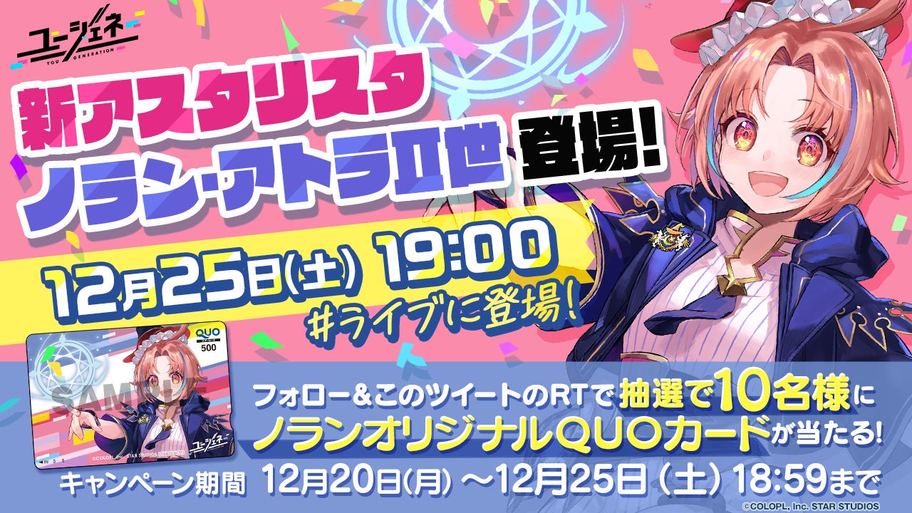 『ユージェネ』新キャラ「ノラン・アトラⅡ世」が12月25日(土)に#ライブデビュー!デビューを記念してQUOカードが当たるキャンペーンがスタート!!