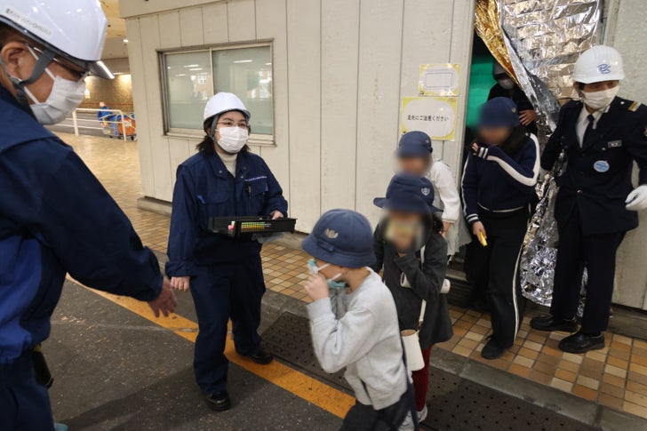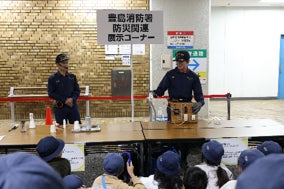 サンシャインシティでは、従前より毎年春と秋に豊島区と豊島消防署協力のもと、施設内のオフィス・商業テナントなどの在勤者約1,000名が参加する自衛消防訓練を実施しております。今回、在勤者向けの訓練終了後のバスターミナルにて、児童が学校で学んだ「防災」についてより理解するために、授業の一環として防災について考えるきっかけづくりを目指したサンシャインシティ独自の「なんか面白い、防災体験!」*を体験しました。