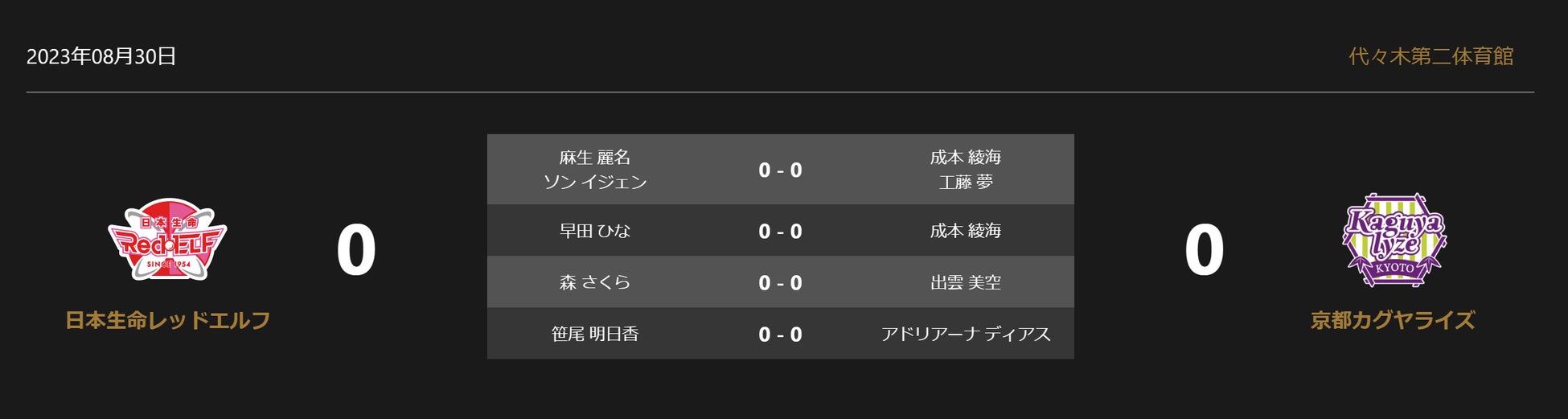 ノジマTリーグ 2023-2024シーズン 公式戦 8月30日開催 日本生命レッドエルフ vs 京都カグヤライズ 対戦オーダー発表
