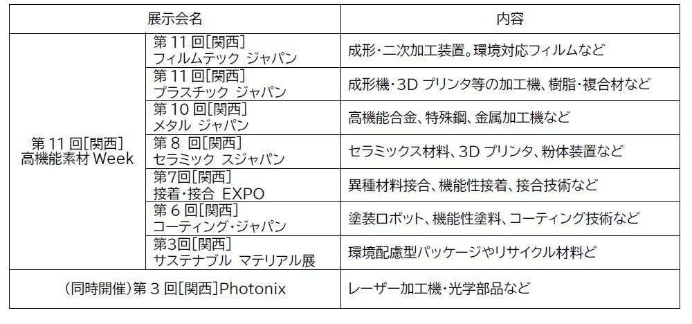 ・展示会名 :「第11回 [関西]高機能素材Week」
