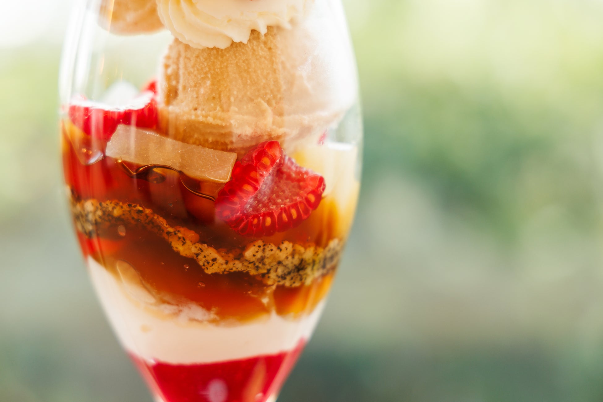 洋梨と相性の良い紅茶・フランボワーズを組み合わせたパフェ