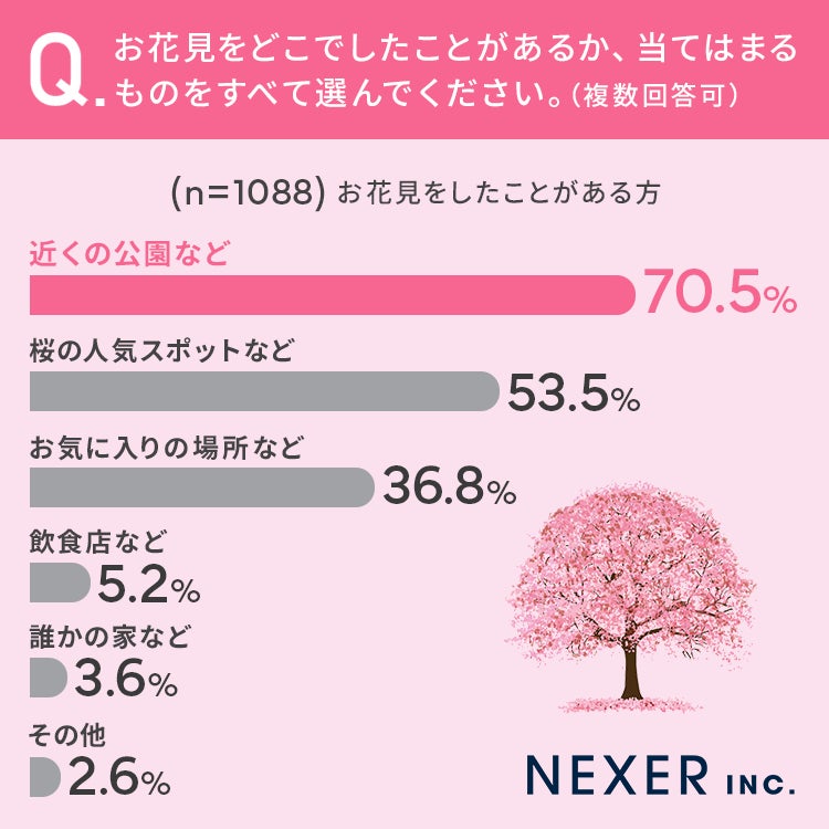 今回は「お花見をする場所」に関するアンケートを行い、その結果について紹介しました。