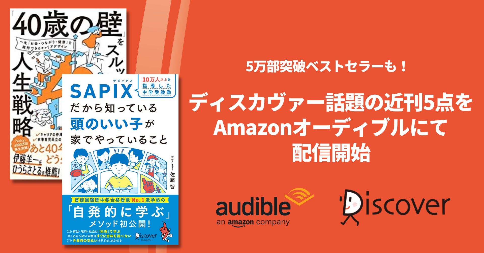 株式会社ディスカヴァー・トゥエンティワン(本社:東京都千代田区、取締役社長:谷口奈緒美)と世界最大級のオーディオブック及び音声コンテンツ制作・配信サービスであるAmazonオーディブル(以下、オーディブル)は、2023年4月に『10万人以上を指導した中学受験塾SAPIXだから知っている頭のいい子が家でやっていること』(佐藤智・著)他4点のオーディオブックを、オーディブルにて発売しました。