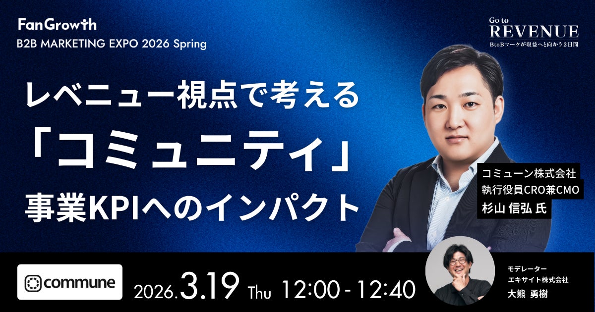 エキサイト株式会社(所在地:東京都港区、代表取締役社長:西條 晋一)が提供する、誰でも売上につながるウェビナーを再現性高く実施できる「FanGrowth」は、BtoBレベニューマーケティングの業界トップランナーが集結する「B2B MARKETING EXPO 2026 Spring - Go to REVENUE -」を開催します。