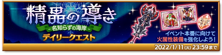 <火属性の戦力を強化しよう!「精晶の導き-名知らずの海岸- デイリークエスト」開催!>