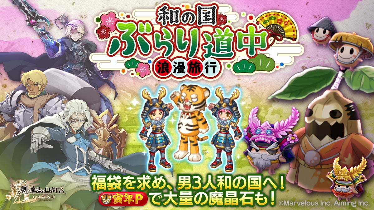 株式会社マーベラス(代表取締役社長:許田 周一/所在地:東京都品川区)は、スマートフォン向け本格オンラインRPG『剣と魔法のログレス いにしえの女神』において、2021/12/28(火)に「ジョブ別 ニヴルヘイム&魔王の魔神器確率アップガチャ」の販売、および新イベント「和の国ぶらり道中浪漫旅行」の開催を含むアップデートを行ったことをお知らせいたします。