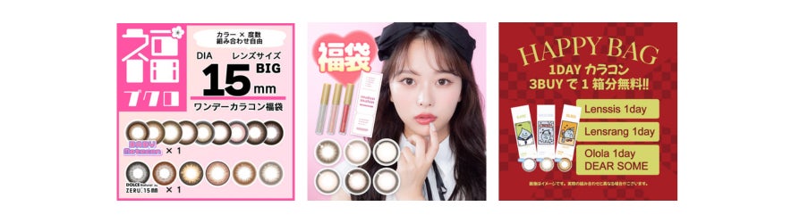 カラコン祭限定でなりたいイメージに合わせて選べる福袋や様々な種類の人気カラコンがお試しできる福袋をご用意しております。