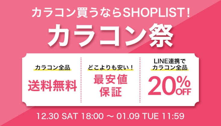 『SHOPLIST カラコン祭』とは、SHOPLISTが今回初めて開催するコンタクトレンズを対象に実施する特別セールです。期間中は、定番人気カラコンから新作韓国カラコンまで幅広いラインナップが最安値保証・送料無料・LINE連携で20%OFFとなります。また今回の『SHOPLIST カラコン祭』では、目玉コンテンツとして、3箱購入で1箱分無料・カラコン福袋・SHOPLIST カラコンベストアワードを実施します。