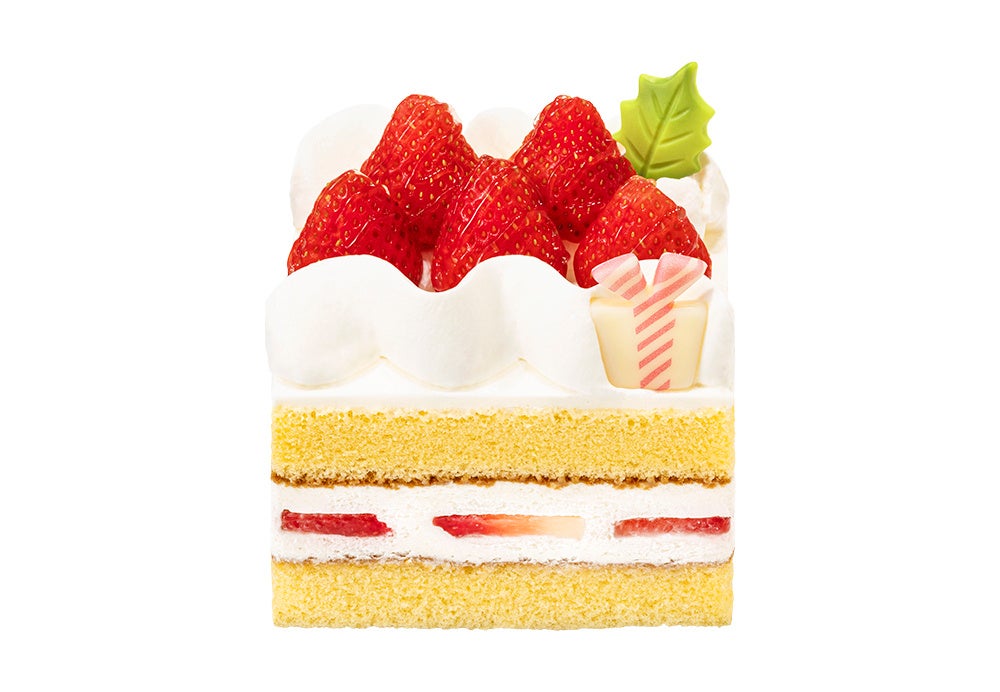 中には瑞々しい苺のおいしさがぎっしり。トップに並べた苺のクリスマスベルが聖夜を美味しく彩ります。ミルクの香り広がるクリームと、しっとり柔らかなスポンジを一緒に召しあがれ。