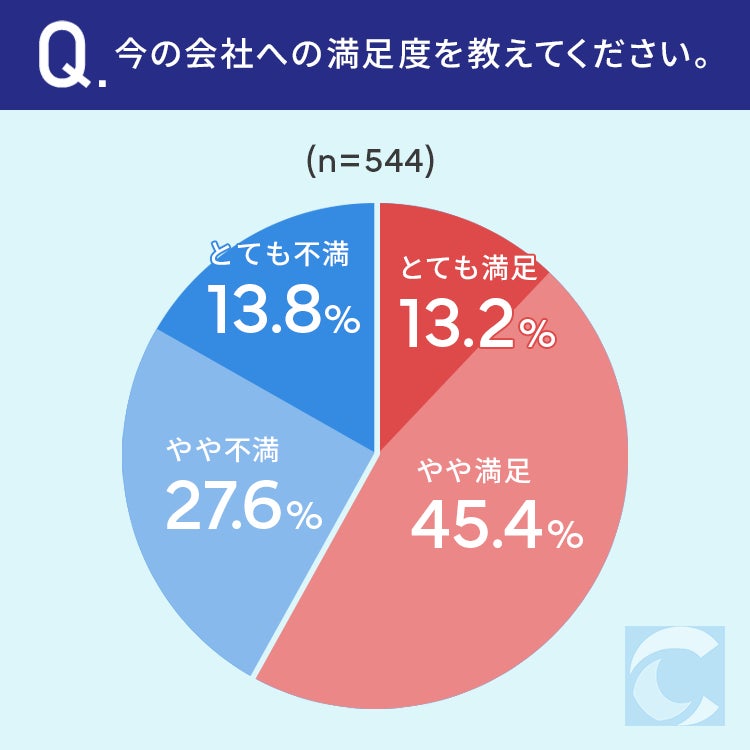 今回は事前調査で「現在会社に勤めている」と回答した全国の男女544人の方々に「現在の会社への満足度と転職」についてアンケートを実施しました。