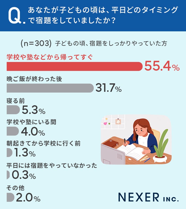 ■55.4%が「学校や塾などから帰ってすぐ」宿題をしていた