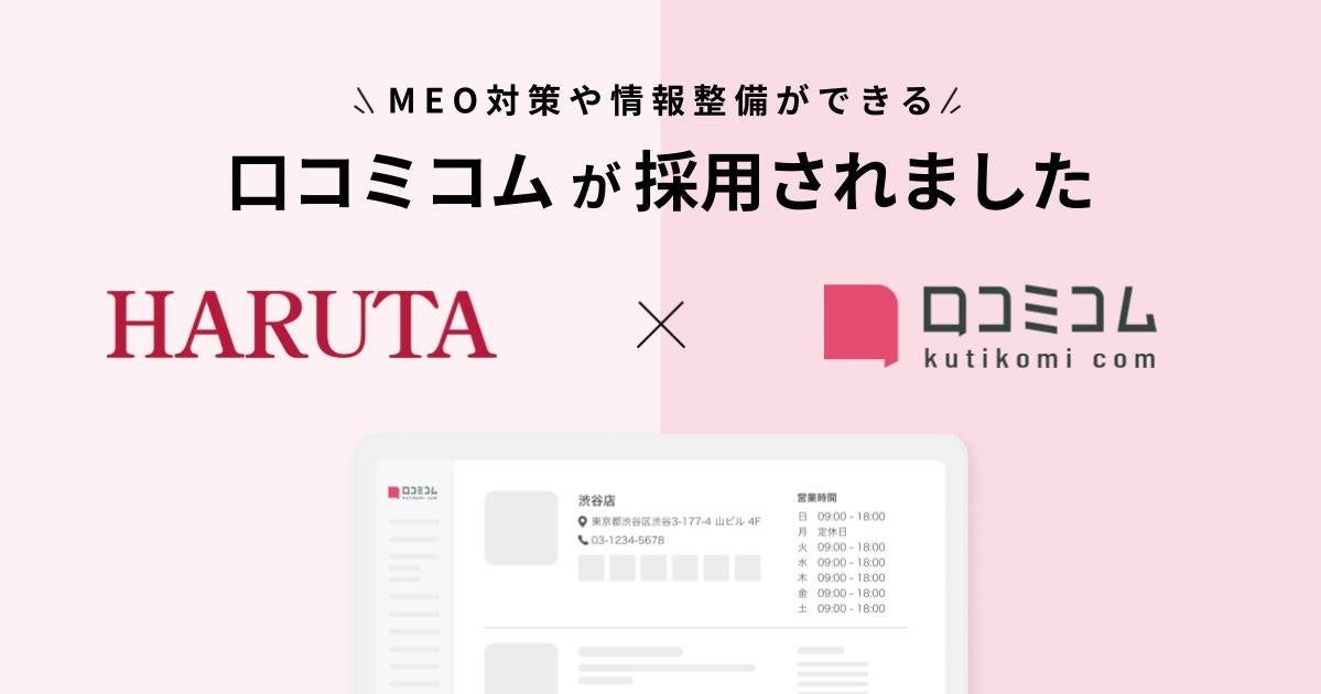株式会社mov(代表取締役:渡邊 誠、本社:東京都渋谷区)が提供する、店舗向け集客一元化プラットフォーム「口コミコム」が、株式会社ハルタ(代表取締役:春田 勲、本社:東京都足立区)において採用されたことをお知らせいたします。今回の導入により、MEO対策・インバウンド対応・OMOを強化し、店舗ごとの集客施策を効率的に展開することで、国内外の来店客数拡大を目指します。