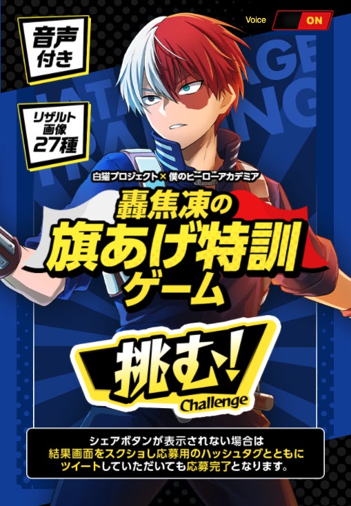 公開中の本コラボイベントの特設サイトにて、ミニゲーム「轟焦凍の旗あげ特訓ゲーム」を遊ぶことができます。