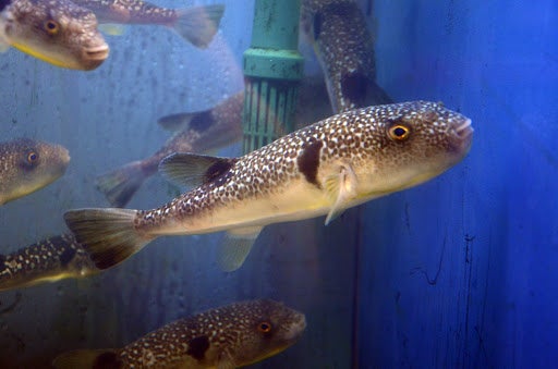 2022年秋の展示の目玉は、「マフグ」。8月に開催されたはこだて海の教室「海釣り自然塾」に参加した児童たちが釣った魚を展示しています。マフグは函館近海に多く生息していますが、市民にはあまりなじみがありません。そんなマフグについてもっと知っていただくために、個性的な丸い体やぷっくりとした顔、きれいな黄色いラインなど、そのユニークな生態を説明板で紹介しています。同じ水槽では、イシガレイも展示。砂に潜ったり、エサを求めてひらひらと水面に上がってくる様子が見ることができます。