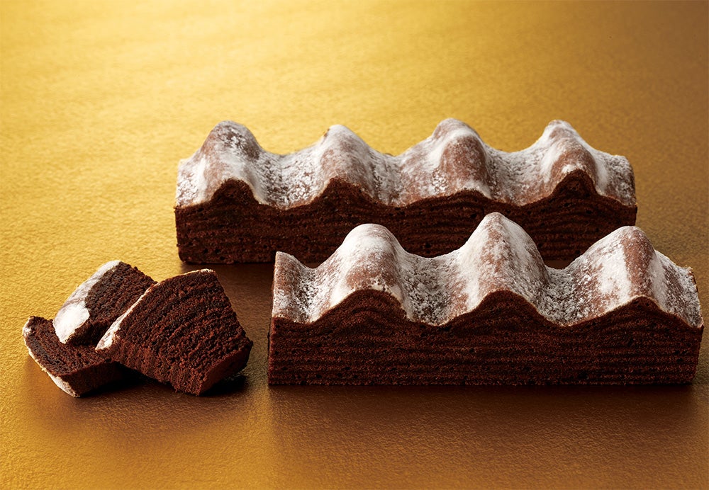 深いコクとチョコレートの味わいを⼀層⼀層厚焼きで丹念に閉じ込めることで、ずっしり重厚な味わい