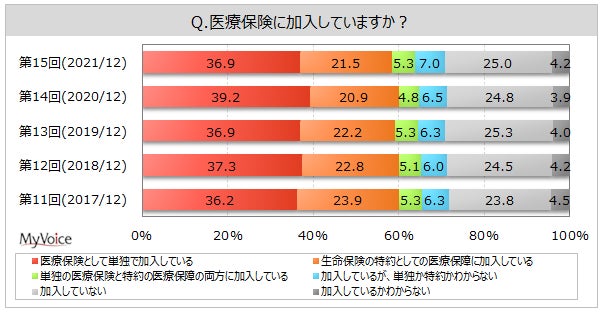 マイボイスコム株式会社(東京都千代田区、代表取締役社長:高井和久)は、インターネット調査を中心に提供している伊藤忠グループのリサーチ会社です。この度、15回目となる『医療保険の加入』に関するインターネット調査を2021年12月1日~5日に実施し、10,116件の回答を集めました。調査結果をお知らせします。