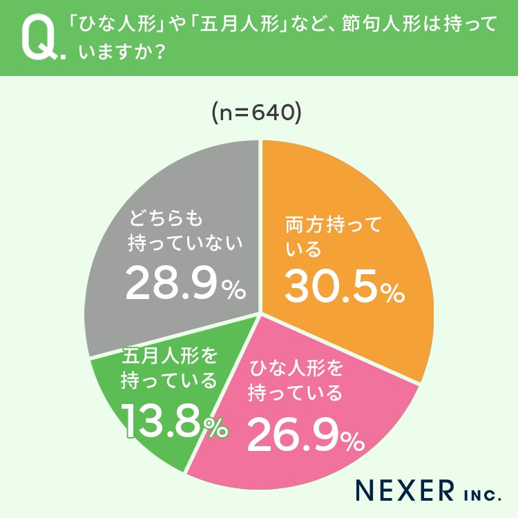 さらに合計で57.3%の方が「ひな人形」を、44.2%の方が「五月人形」を持っていると回答していました。
