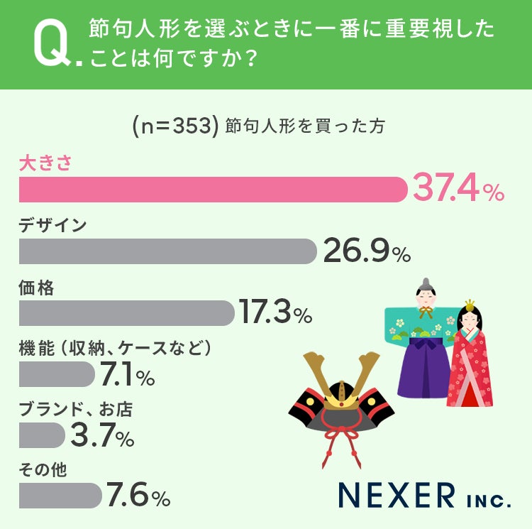 インターネットやデパートでも手軽に購入できる時代ではありますが、人形専門店でしっかりサポートを受けつつ購入したいという方も大勢いることが分かりました。