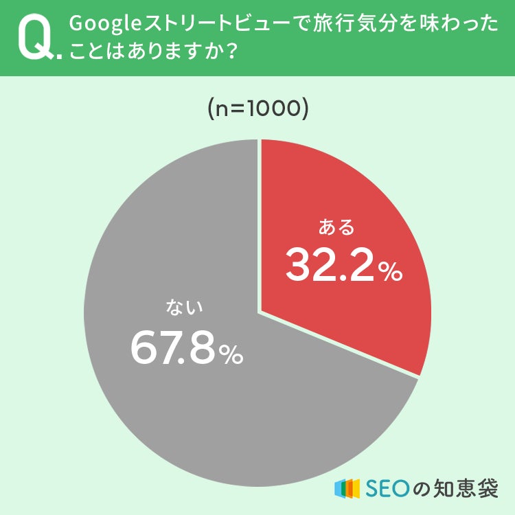 32.2%と3割以上の方が、Googleストリートビューで旅行気分を味わったことが「ある」と回答しています。