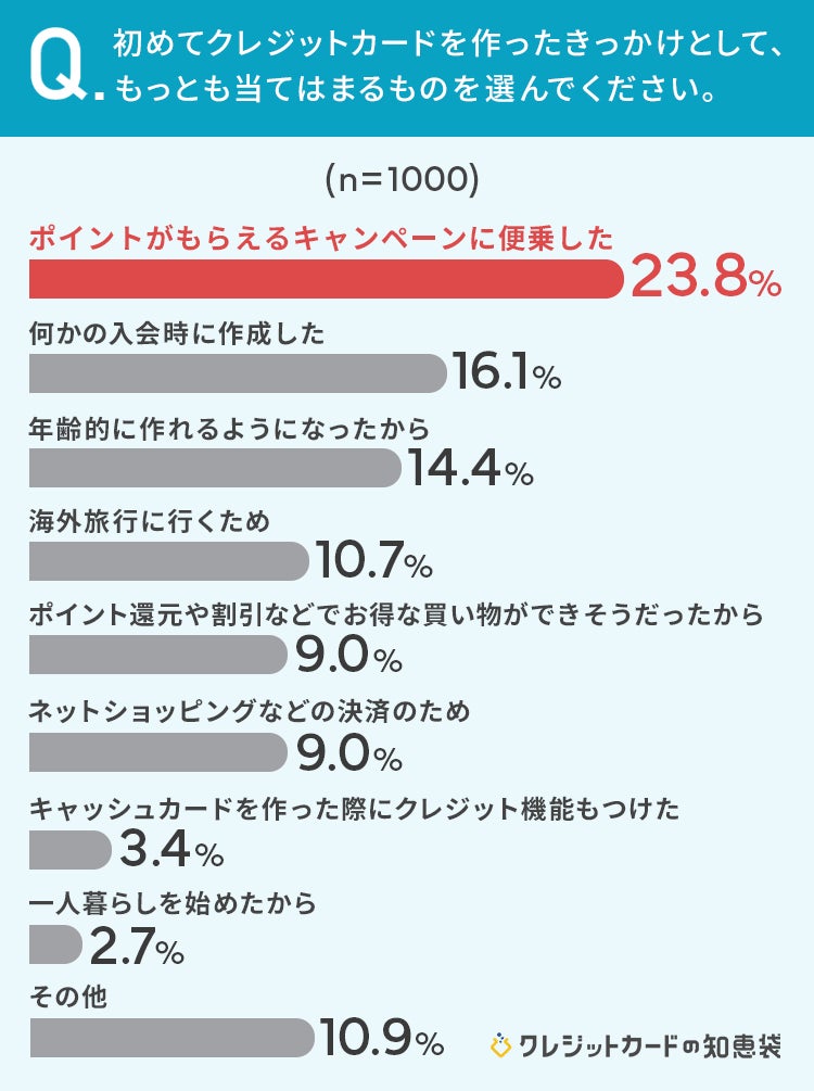 【クレカ初めて作ったきっかけは?】23.8%で「ポイントがもらえるキャンペーンに便乗」がもっとも多い結果に