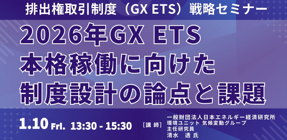 JPI(日本計画研究所)は、一般財団法人日本エネルギー経済研究所 環境ユニット 気候変動グループ 主任研究員 清水 透 氏を招聘し、2026年GX ETS本格稼働に向けた制度設計の論点と課題について詳説いただくセミナーを開催します。