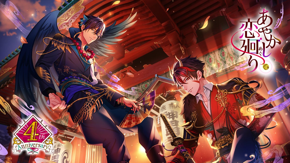 「あやかし恋廻り」 (以下、「あや恋」)は、文明開化で華やぐ明治時代の帝都を舞台に、突然陰陽師の力に目覚めた主人公が、前世の縁で結ばれた妖(あやかし)たちと共に大いなる陰謀に立ち向かっていく、明治浪漫ファンタジーです。2018年に配信開始して以降、魅力的で個性豊かなキャラクターたちや美麗イラストでご好評いただいており、今年10月30日(日)に配信4周年を迎えることができました。