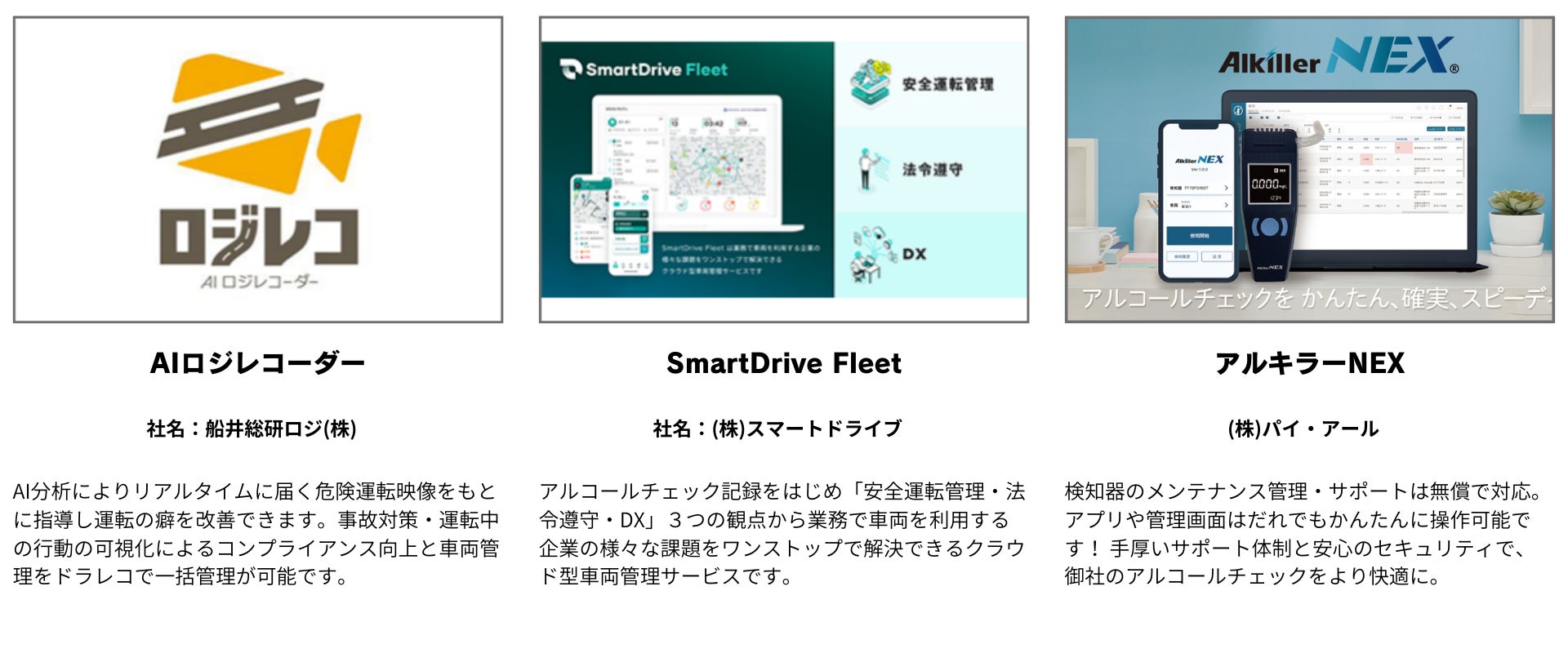 12月1日より、アルコール検知器による飲酒検査が義務化となります。いよいよ始まる義務化へ向け、アルコール検知器や車両管理サービスなどが出展。