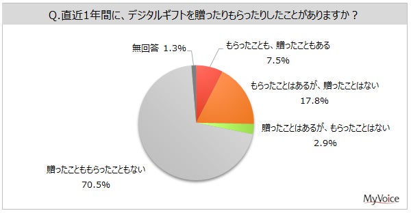 - 直近1年間に贈ったデジタルギフトの内容、もらったデジタルギフトの内容