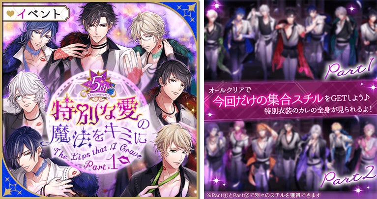 Part1・2それぞれオールクリアすると、5周年特別衣装の集合スチルをプレゼント。ぜひ豪華スチルをGETしてくださいね♪