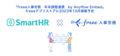 freee株式会社(本社:東京都品川区、CEO:佐々木大輔、以下「freee」)が提供する「freee人事労務」は株式会社SmartHR(本社:東京都港区、代表取締役CEO:芹澤 雅人)が運営するクラウド人事労務ソフト「SmartHR(スマートエイチアール)」と年末調整におけるデータ連携のためのアプリケーション「freee人事労務 年末調整連携 by Anyflow Embed」を2023年10月下旬にfreeeアプリストアに公開することをお知らせします。
