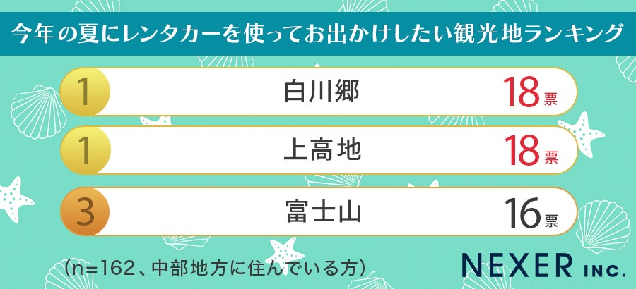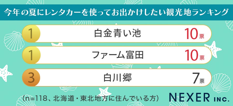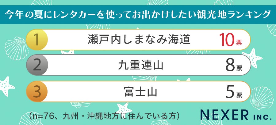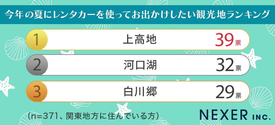株式会社NEXER・今年の夏にレンタカーを使ってお出かけしたい観光地に関する調査
