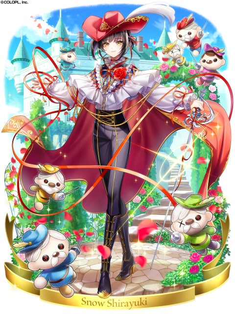 スノウ・シラユキ(CV:白石涼子)、エデルヴェス・アロゼ(CV:河瀬茉希)、プリムヴェール・ジェルメ(CV:鈴木愛奈)が登場しております。スノウ・シラユキは王子姿とドレス姿の2種類が登場します。