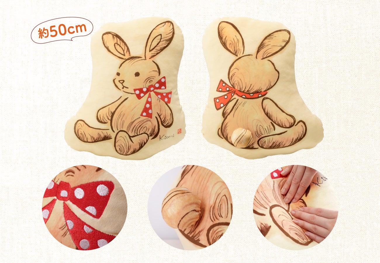 「近くにお店がない…」という方はこちら!公式オンラインショップ「パクとモグ」と公式SNSでも『鎌倉五郎の日』を記念してプレゼントキャンペーンを開催いたします。今年のプレゼントは小町通り本店のお店番をしている看板うさぎ“きぼり”のかわいいぬいぐるみクッションです。表のリボンの刺繡とぽこっとした立体感のあるしっぽがとってもキュート!ずっともふもふしたくなる愛らしさです。ぜひこの機会に抽選に参加しておうちできぼりちゃんとまったり時間を過ごしてくださいね。