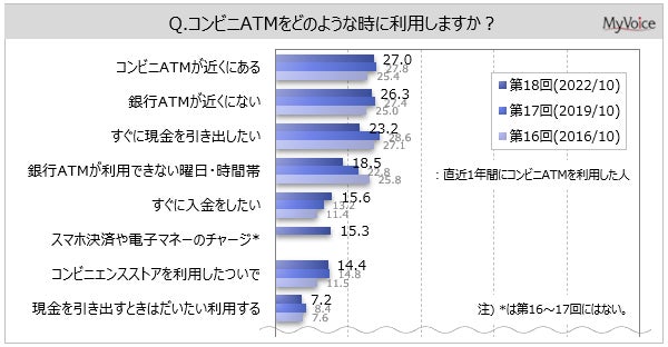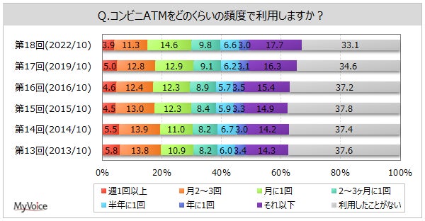 マイボイスコム株式会社(東京都千代田区、代表取締役社長:高井和久)は、18回目となる『コンビニATMの利用』に関するインターネット調査を2022年10月1日~5日に実施しました。調査結果をお知らせします。