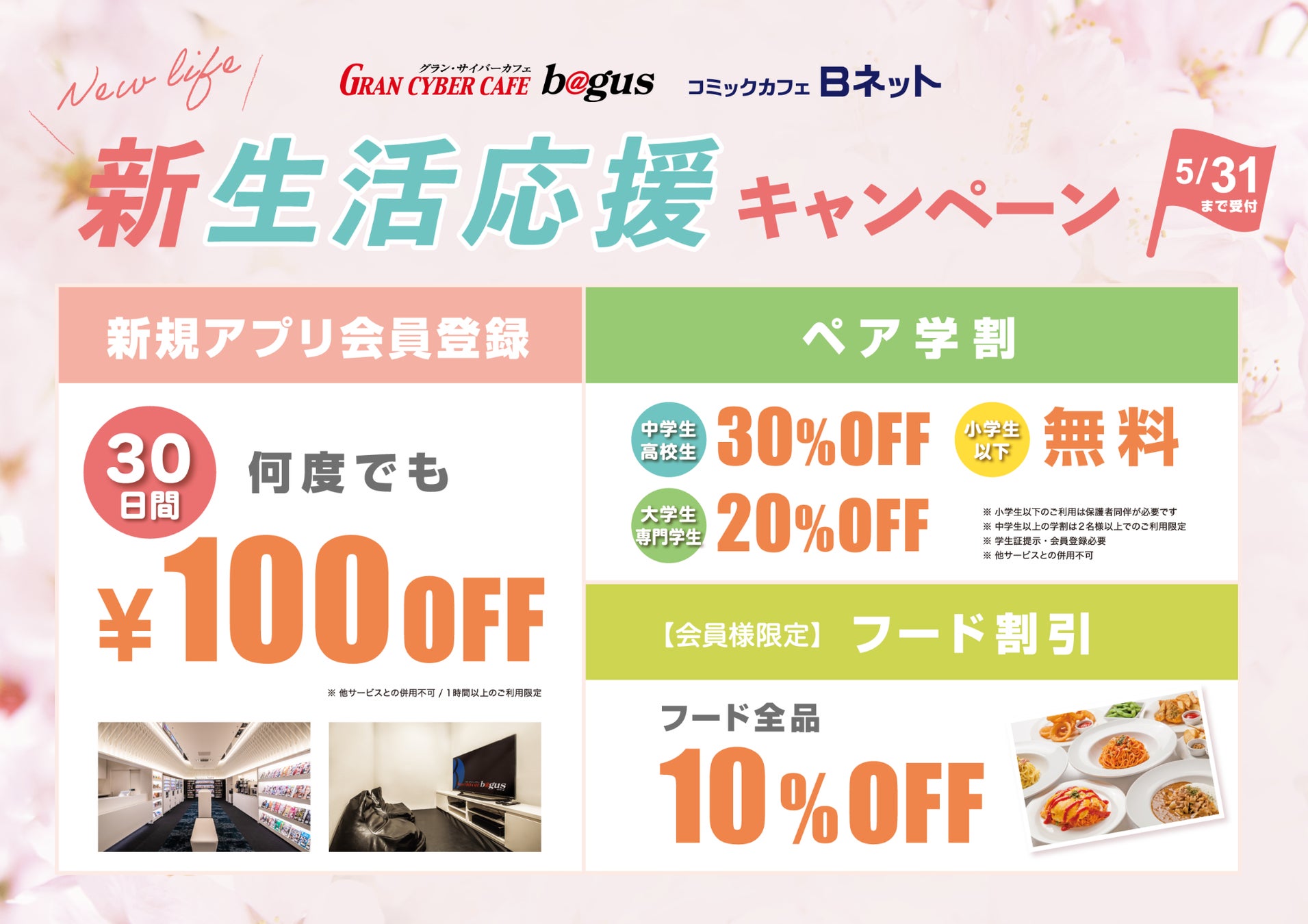 「桜ソフトクリーム食べ放題」や「大学生20%OFF」など特典満載!BAGUSインターネットカフェ全店で『春の新生活応援キャンペーン』開催!