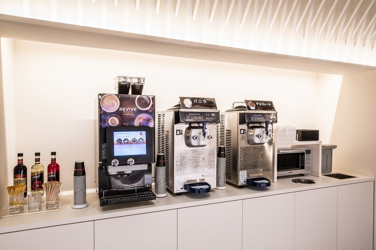バグース各店では30種類以上のソフトドリンクや入れたてのコーヒーが味わえる本格コーヒーマシン、芳醇な味わいのソフトクリームなども全てフリーでお楽しみいただけます。