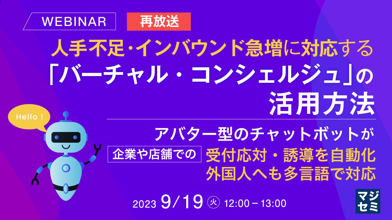 マジセミ株式会社は「AIチャットボット×リアルタイム翻訳で、インバウンド需要に対応する」というテーマのウェビナーを開催します。