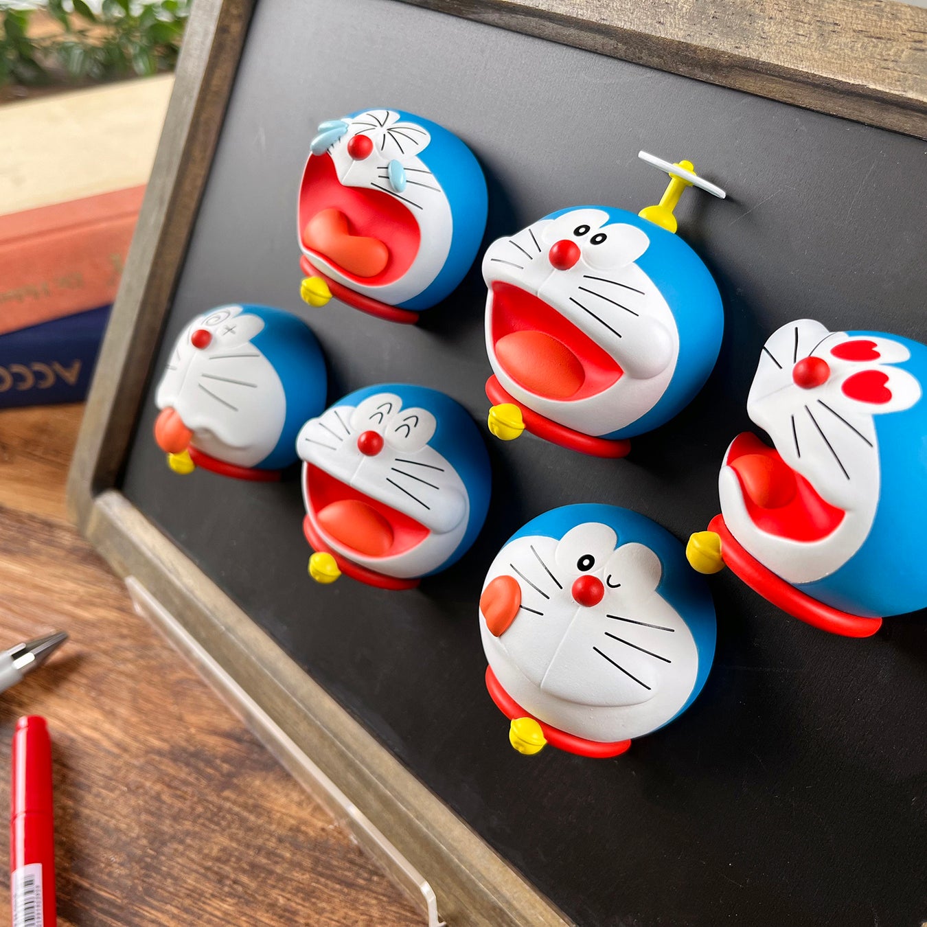 立体的に表現された様々な表情が魅力的な、ドラえもんのフェイス型マグネットです。