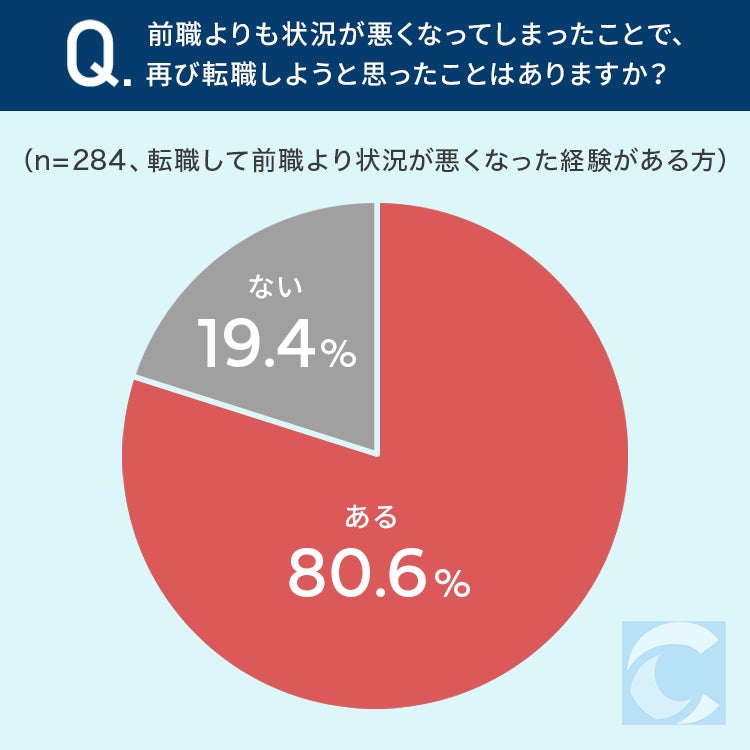続いて、前職よりも状況が悪くなってしまったことで再び転職しようと思ったことはあるか聞いてみました。