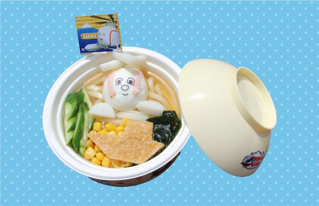 トーマスレストランでは、レスキューチームをイメージした期間限定メニューが新登場。空のヒーロー「ハロルド」がパトロールしている様子をイメージした「ハロルドの冷やしレスキューうどん(スーベニア丼付き)」をはじめ、ピリ辛な味わいが特徴の「フリンの辛口消火坦々うどん」、ハロルドやパーシーをイメージした暑い夏にぴったりなシェイクといったメニューを多数販売いたします。