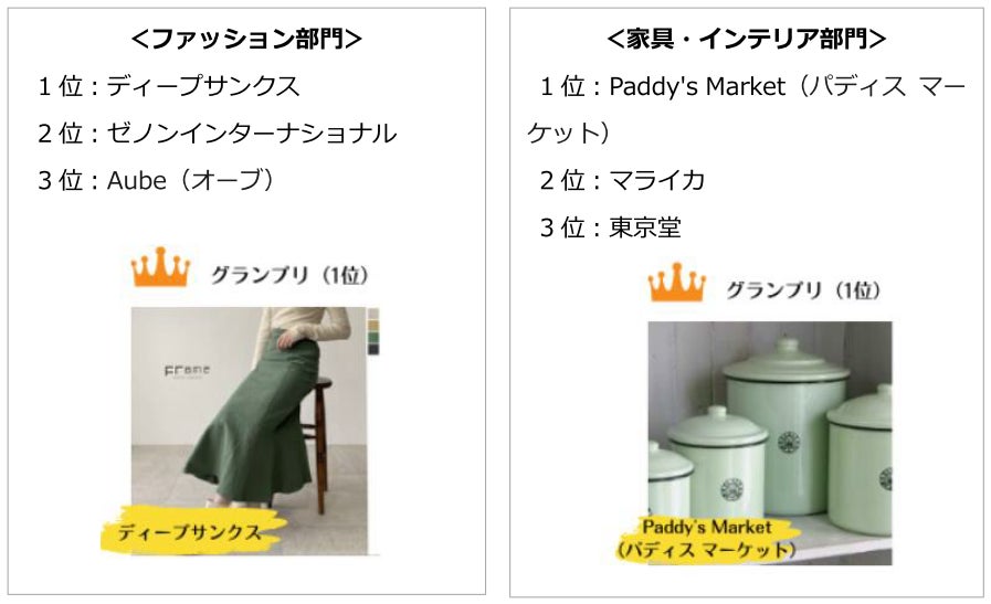 受賞企業は、新商品の豊富さやブランドの世界観など、「企画力」や「オリジナリティー」が高く評価される結果となりました。また、手にしやすいリーズナブルな価格設定や品質の高さは消費者からの満足度も高いことから、リピートにつながり「ファン」の事業者を増やしていることもわかりました。