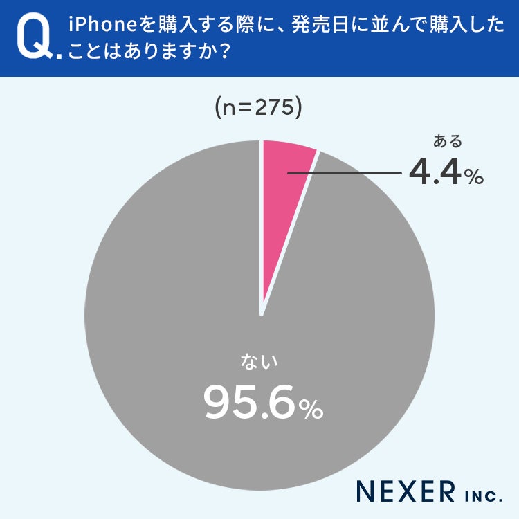 4.4%の方がiPhoneを購入する際に、発売日に並んで購入したことが「ある」と回答しています。