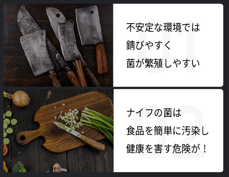 そんな目に見えないバクテリアがびっしり付いた包丁を使って料理をしてしまうと、私たちの健康を害してしまうリスクがあるのです!