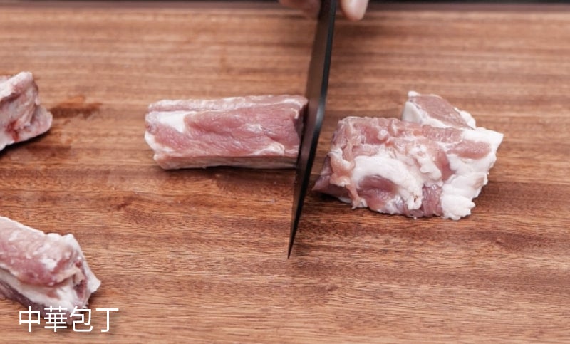 大きな刃の重みを使い、肉や魚、野菜を切ったり、食材を刃の平面で潰すことができます!