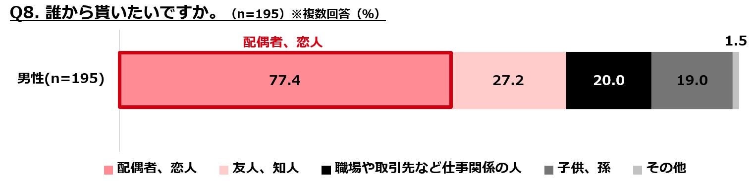 ・貰いたい相手は「配偶者、恋人」が8割弱。