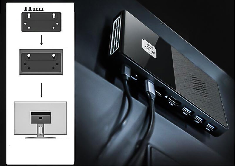 小型なため、モニターの背面に固定することも可能。パソコン環境を非常にスッキリとさせることができます。